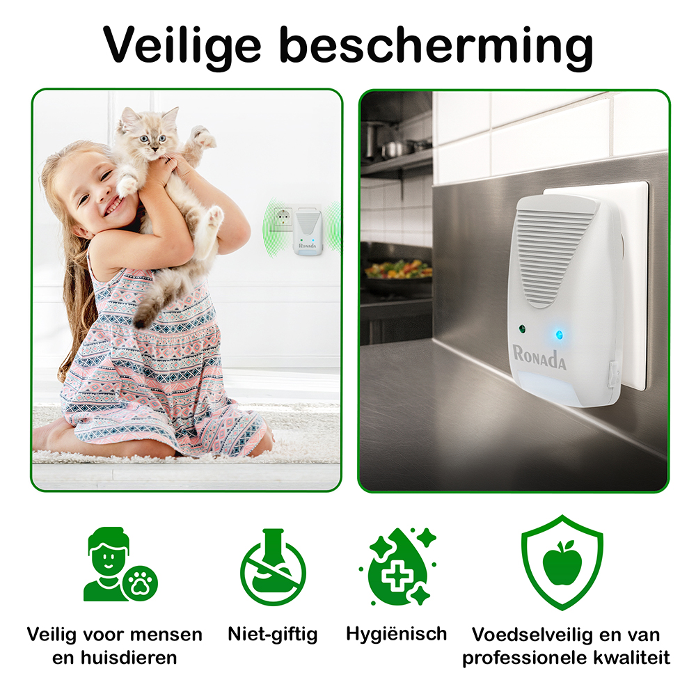 De Muizen en rattenverjager (3 in 1) kan eenvoudig in een stopcontact gestoken worden en is daarnaast niet schadelijk voor kinderen en huisdieren.